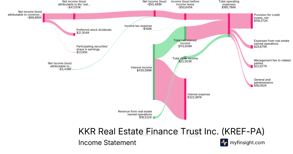 For the year ending 2025-12-31, KREF-PA made $119,372K in revenue. -$69,885K in net income. Net profit margin of -58.54%.