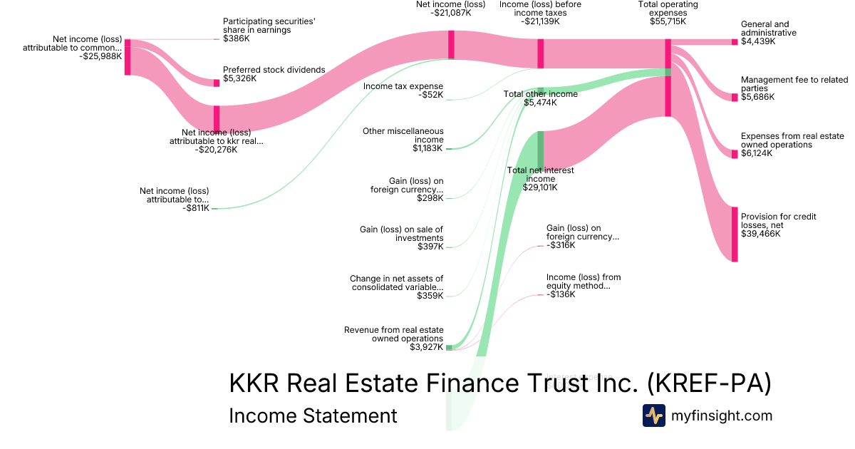 For the year ending 2025-12-31, KREF-PA made $642,071K in revenue. -$69,885K in net income. Net profit margin of -10.88%.