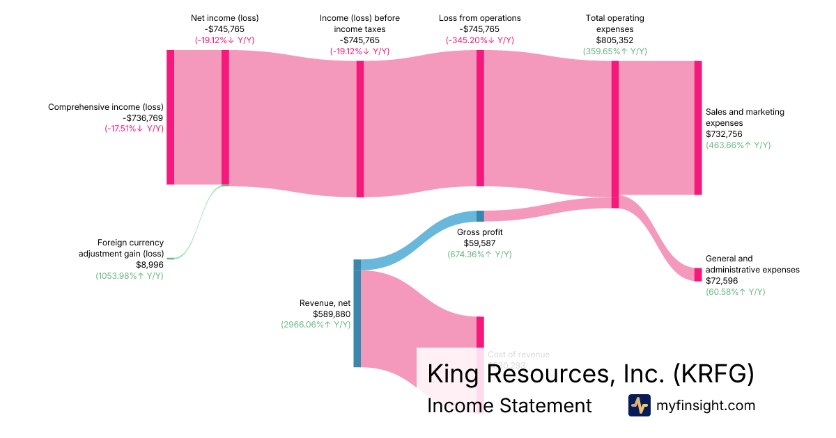 For the quarter ending 2025-12-31, KRFG made $589,880 in revenue. -$736,769 in net income. Net profit margin of -124.90%.