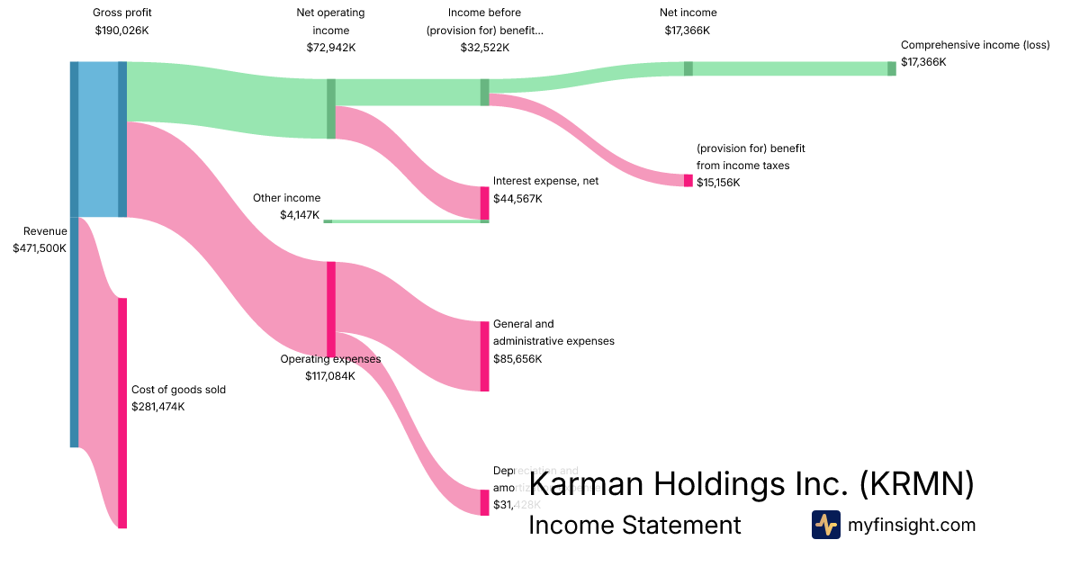For the year ending 2025-12-31, KRMN made $471,500K in revenue. $17,366K in net income. Net profit margin of 3.68%.