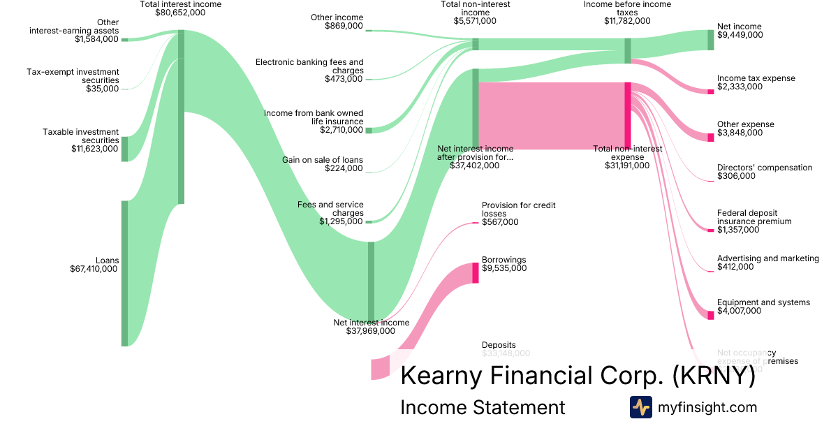 For the quarter ending 2025-12-31, KRNY made $160,097,000 in revenue. $9,449,000 in net income. Net profit margin of 5.90%.