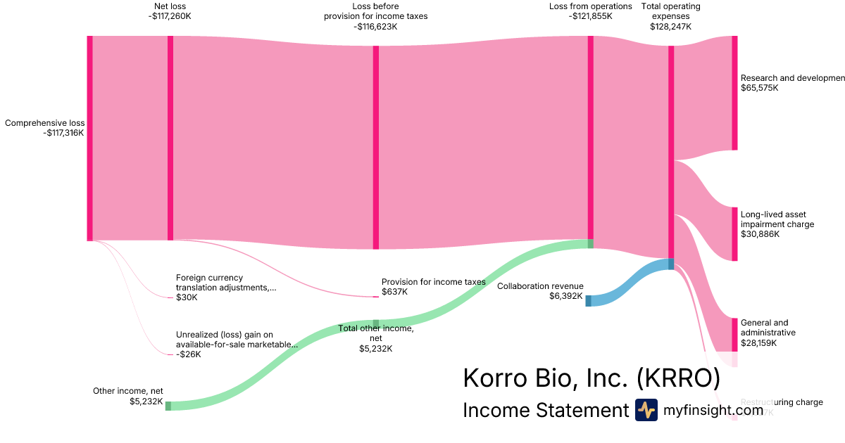 For the year ending 2025-12-31, KRRO made $6,392K in revenue. -$117,316K in net income. Net profit margin of -1835.36%.