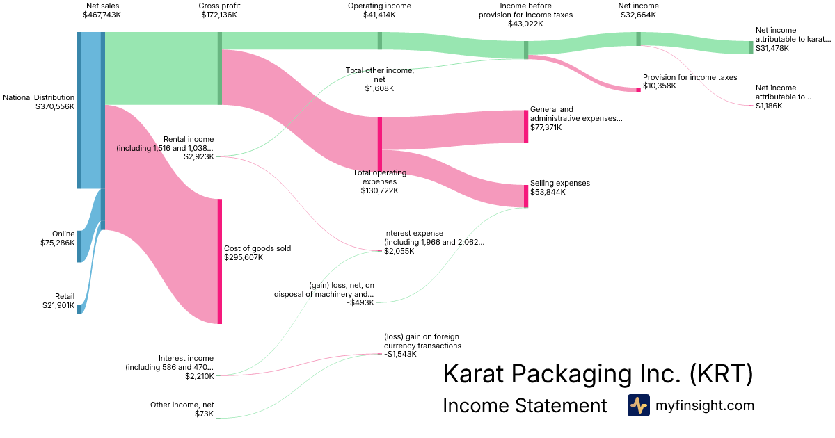 For the year ending 2025-12-31, KRT made $467,743K in revenue. $31,478K in net income. Net profit margin of 6.73%.