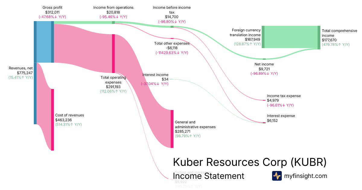 For the quarter ending 2025-09-30, KUBR made $775,247 in revenue. $177,670 in net income. Net profit margin of 22.92%.