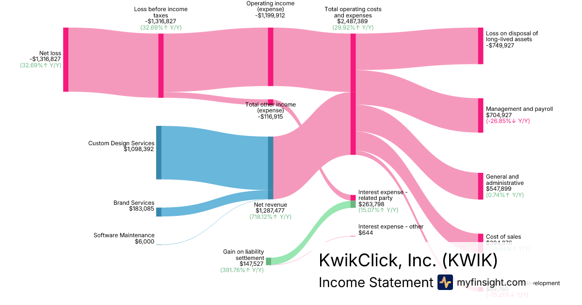 For the year ending 2025-12-31, KWIK made $1,287,477 in revenue. -$1,316,827 in net income. Net profit margin of -102.28%.