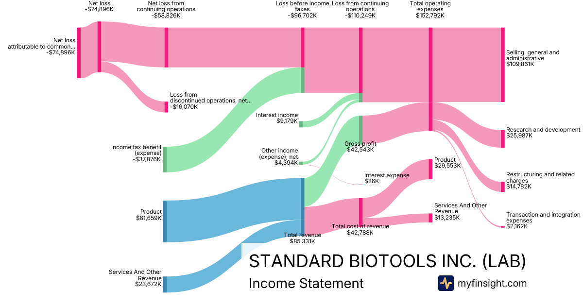 For the year ending 2025-12-31, LAB made $85,331K in revenue. -$74,896K in net income. Net profit margin of -87.77%.