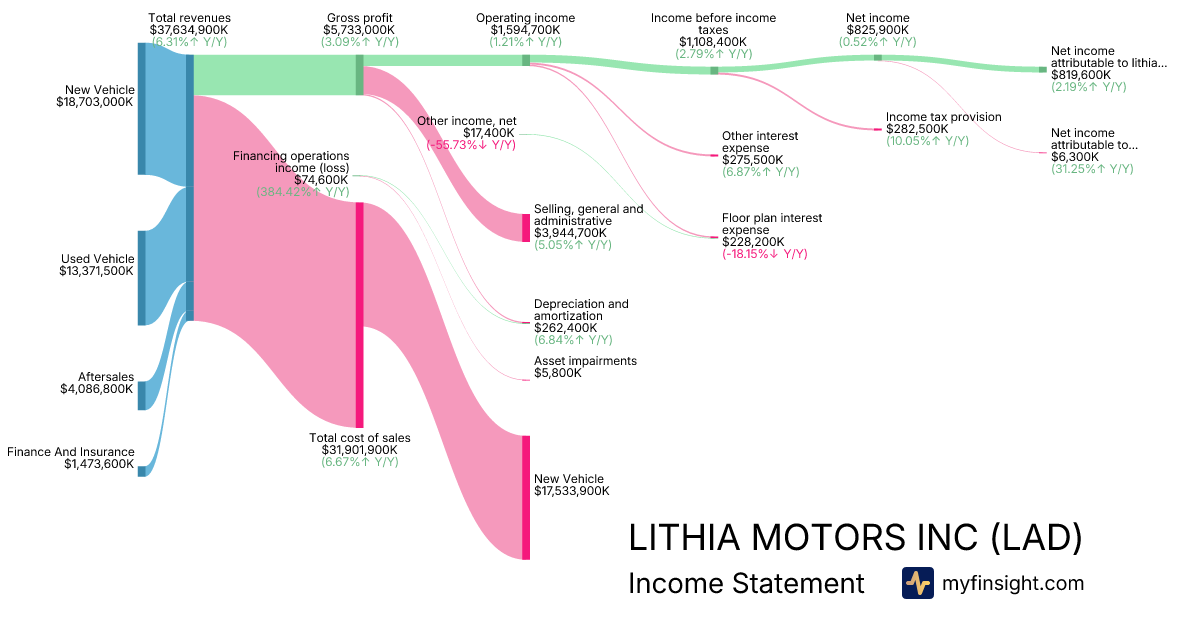 For the year ending 2025-12-31, LAD made $37,634,900K in revenue. $819,600K in net income. Net profit margin of 2.18%.