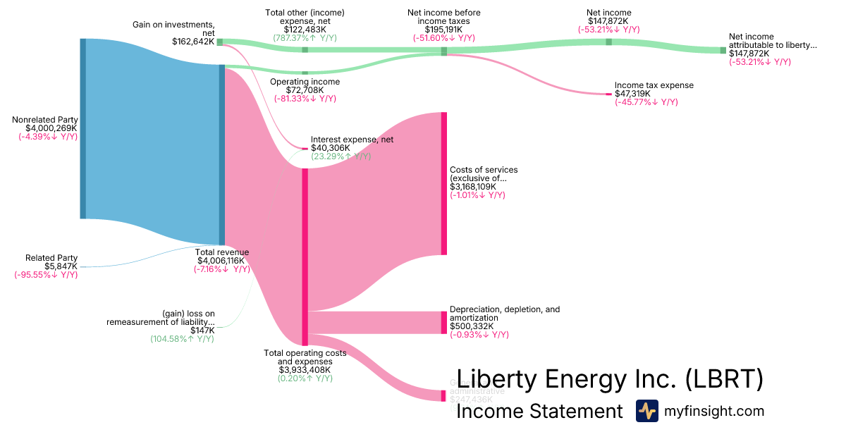For the year ending 2025-12-31, LBRT made $4,006,116K in revenue. $147,872K in net income. Net profit margin of 3.69%.