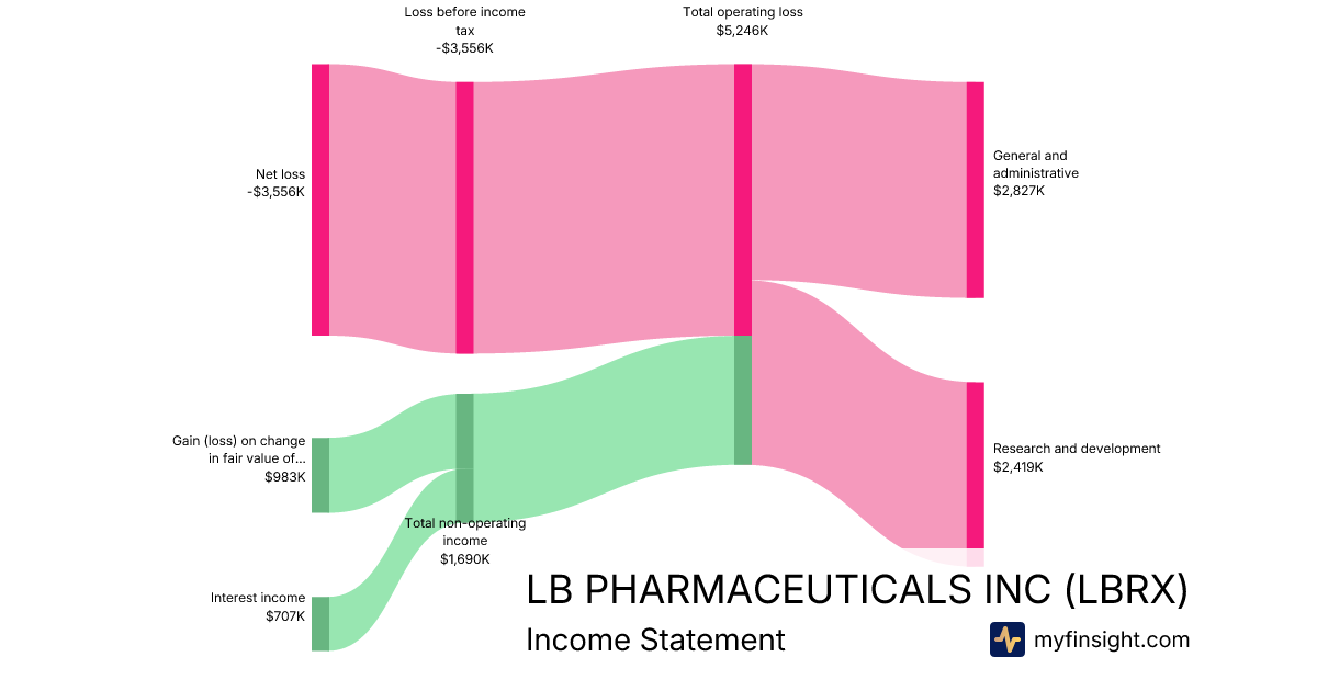 For the quarter ending 2025-09-30, LBRX made $6,936K in revenue. -$3,556K in net income. Net profit margin of -51.27%.