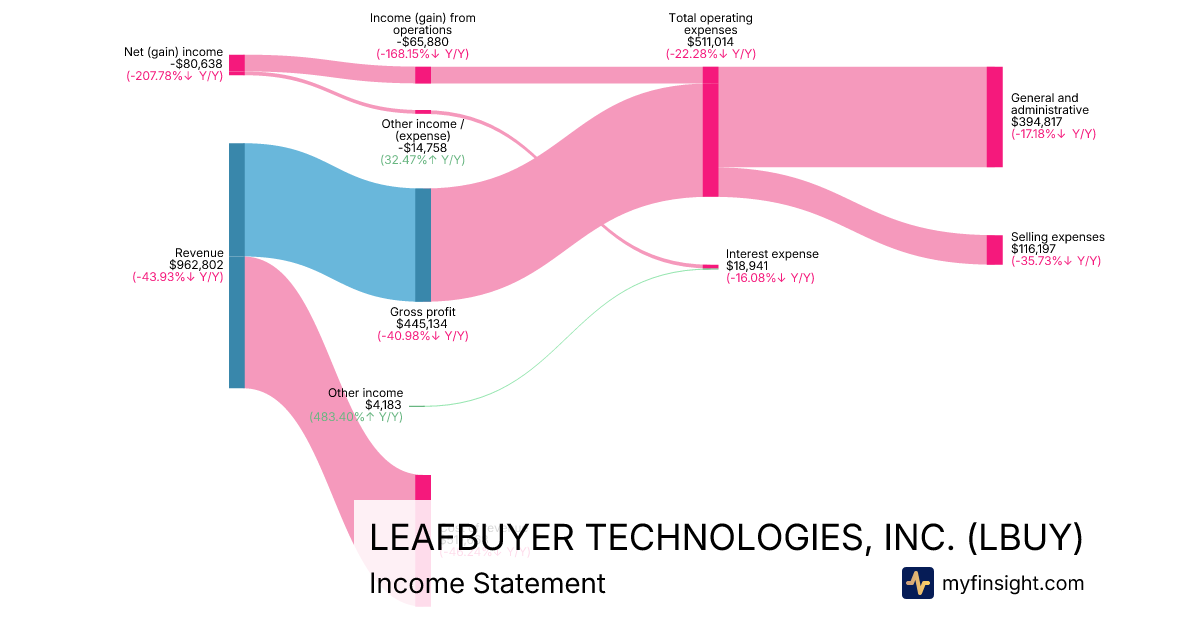 For the quarter ending 2025-12-31, LBUY made $962,802 in revenue. -$80,638 in net income. Net profit margin of -8.38%.