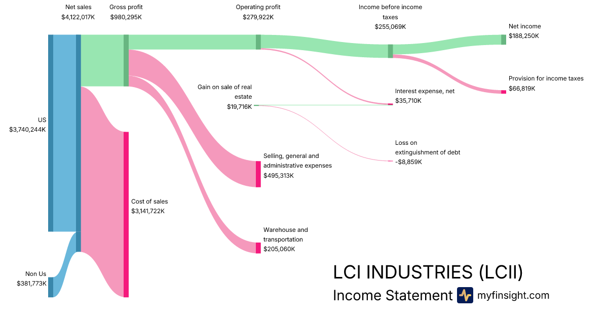 For the year ending 2025-12-31, LCII made $4,122,017K in revenue. $188,250K in net income. Net profit margin of 4.57%.