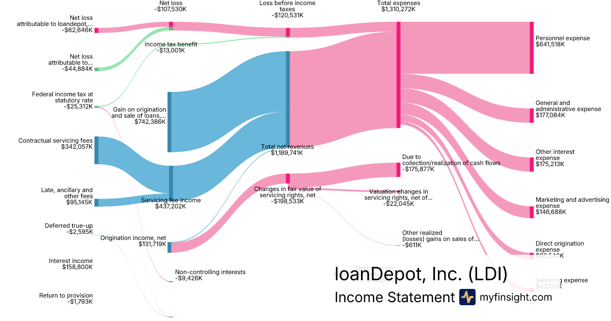 For the year ending 2025-12-31, LDI made $1,189,741K in revenue. -$62,646K in net income. Net profit margin of -5.27%.