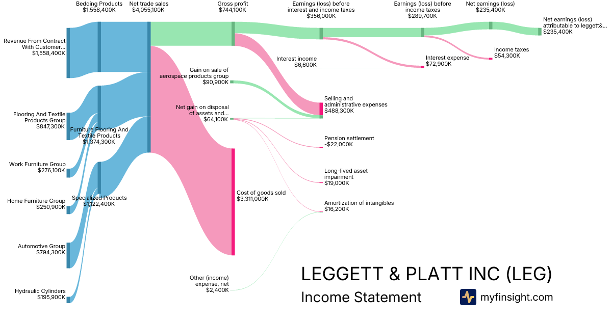 For the year ending 2025-12-31, LEG made $4,055,100K in revenue. $235,400K in net income. Net profit margin of 5.81%.
