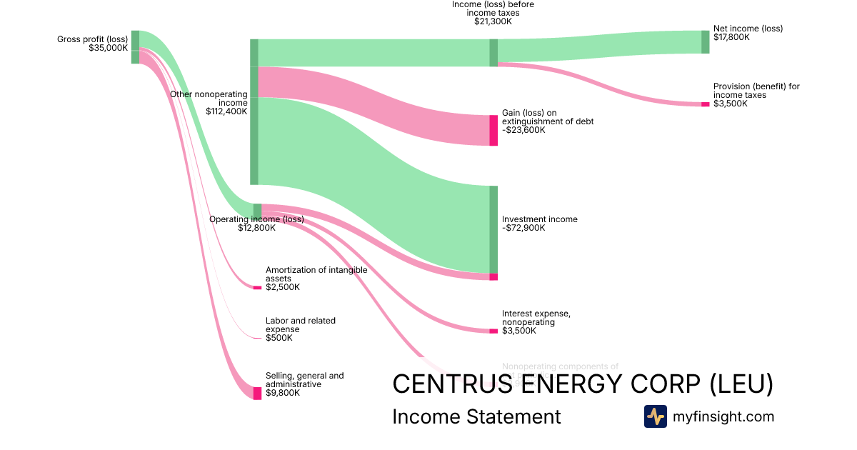 For the year ending 2025-12-31, LEU made $174,000K in revenue. $77,800K in net income. Net profit margin of 44.71%.
