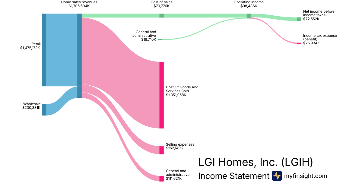 For the year ending 2025-12-31, LGIH made $1,705,504K in revenue. $72,552K in net income. Net profit margin of 4.25%.