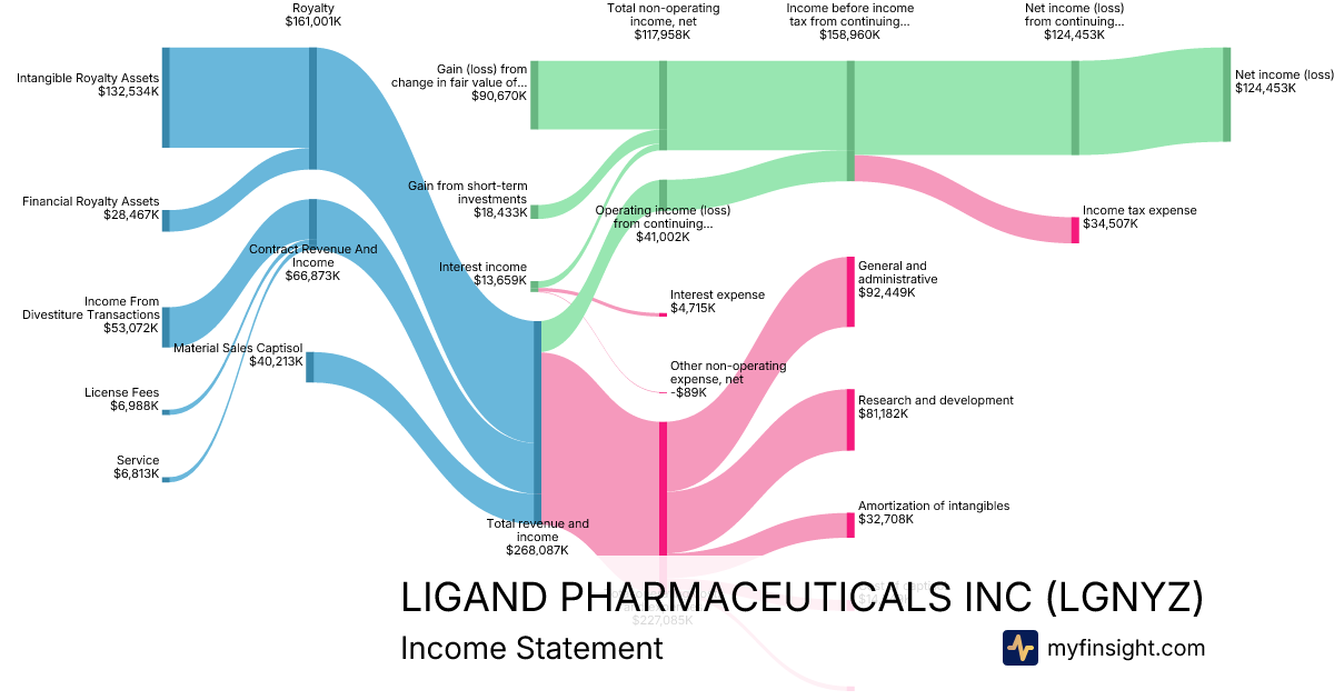 For the year ending 2025-12-31, LGNYZ made $268,087K in revenue. $124,453K in net income. Net profit margin of 46.42%.