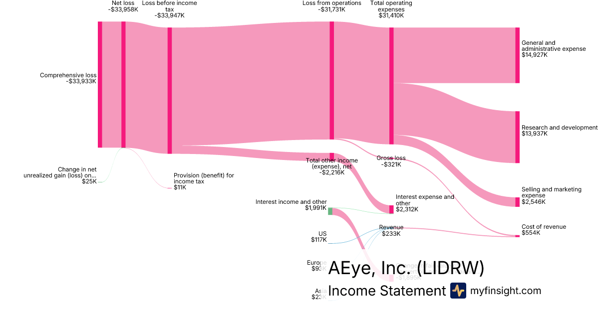For the year ending 2025-12-31, LIDRW made $233K in revenue. -$33,933K in net income. Net profit margin of -14563.52%.