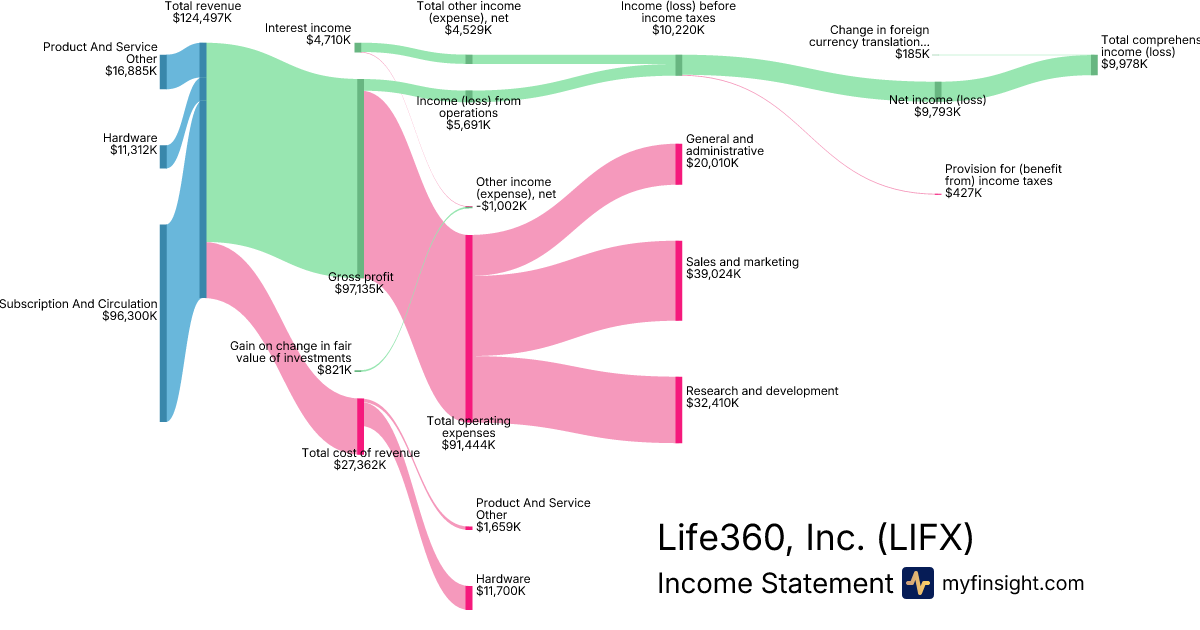 For the quarter ending 2025-09-30, LIFX made $124,497K in revenue. $9,978K in net income. Net profit margin of 8.01%.