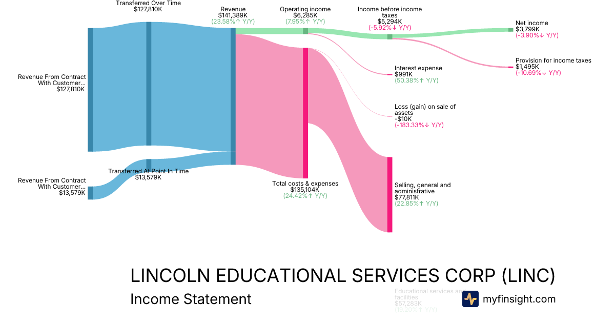 For the quarter ending 2025-09-30, LINC made $141,389,000 in revenue. $3,799,000 in net income. Net profit margin of 2.69%.