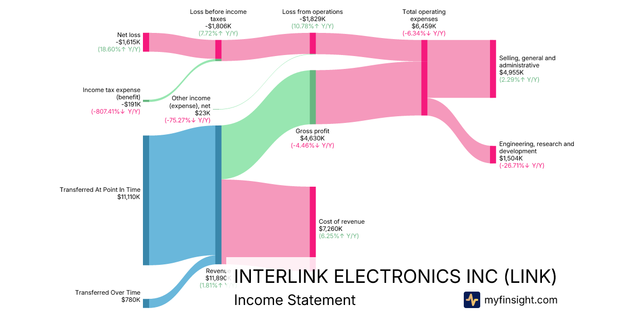 For the year ending 2025-12-31, LINK made $11,890K in revenue. -$1,615K in net income. Net profit margin of -13.58%.