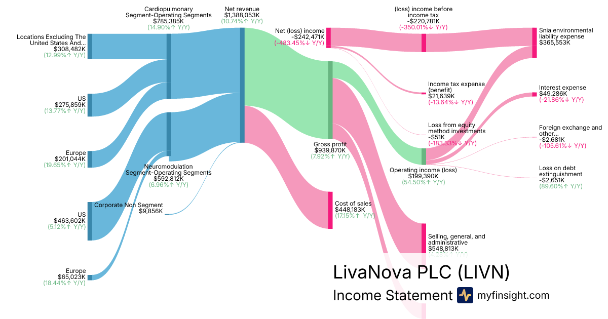 For the year ending 2025-12-31, LIVN made $1,388,053K in revenue. -$242,471K in net income. Net profit margin of -17.47%.