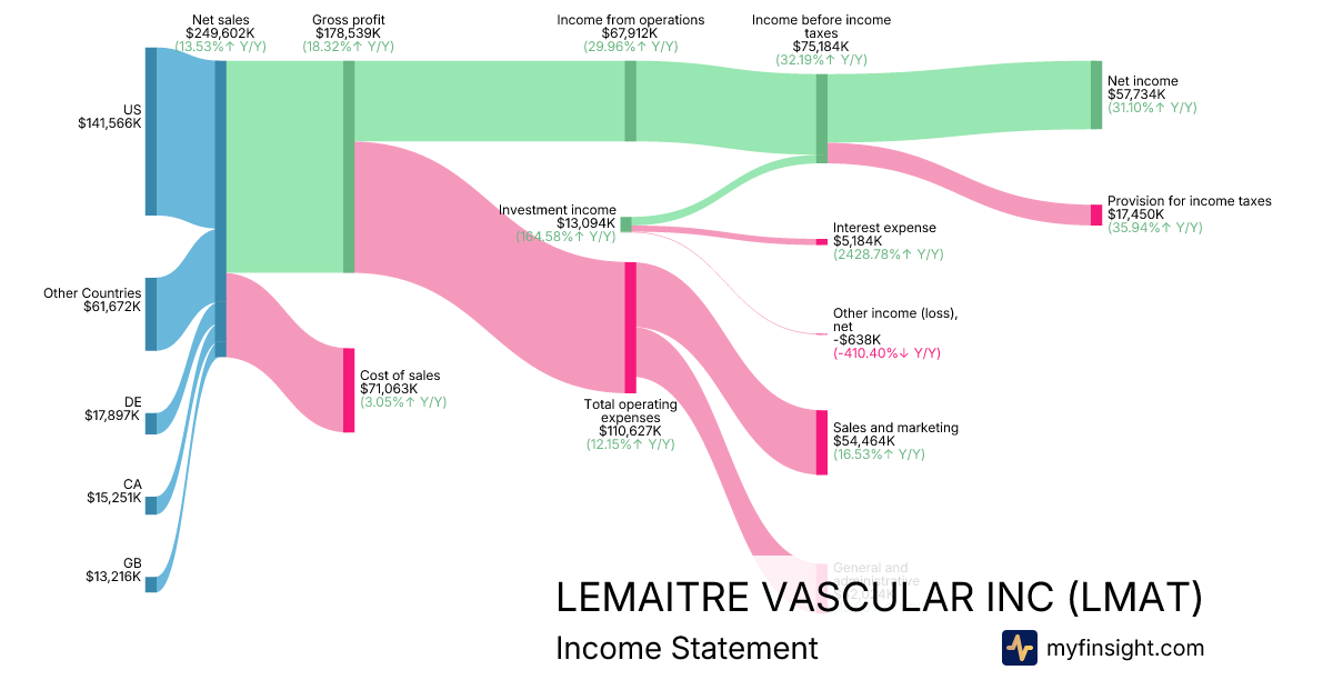 For the year ending 2025-12-31, LMAT made $249,602K in revenue. $57,734K in net income. Net profit margin of 23.13%.