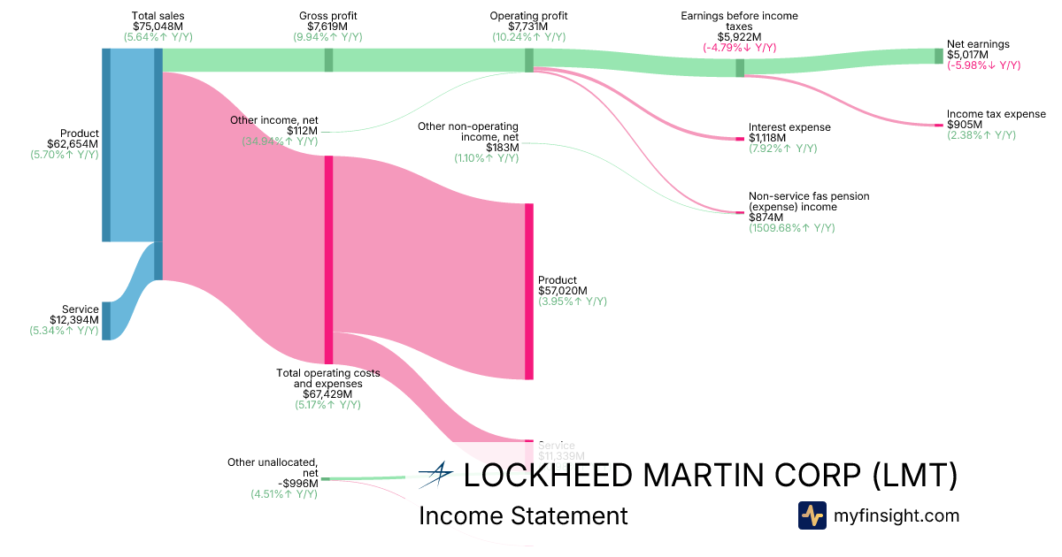For the year ending 2025-12-31, LMT made $75,048M in revenue. $5,017M in net income. Net profit margin of 6.69%.