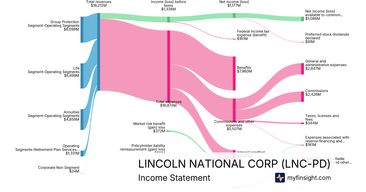 For the year ending 2025-12-31, LNC-PD made $18,212M in revenue. $1,086M in net income. Net profit margin of 5.96%.