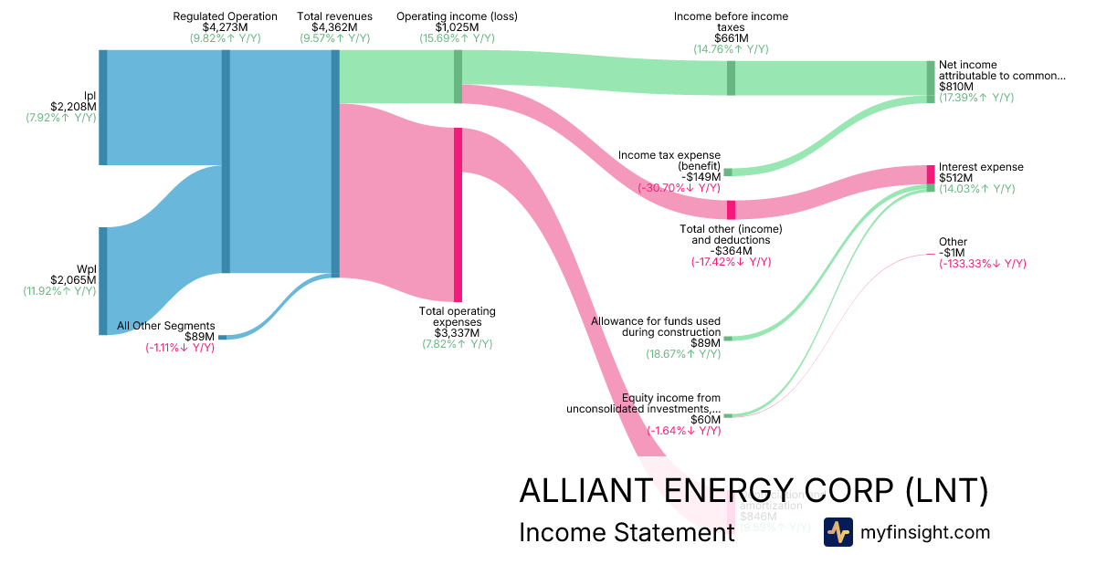 For the year ending 2025-12-31, LNT made $4,362M in revenue. $810M in net income. Net profit margin of 18.57%.