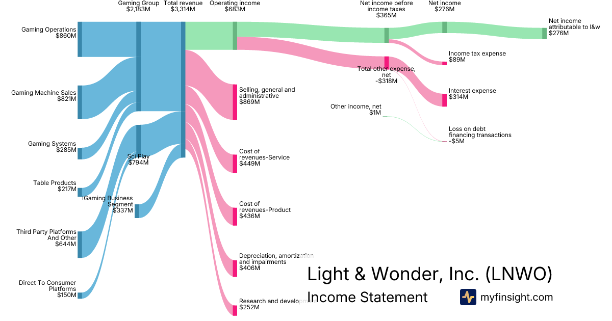 For the year ending 2025-12-31, LNWO made $3,314M in revenue. $276M in net income. Net profit margin of 8.33%.