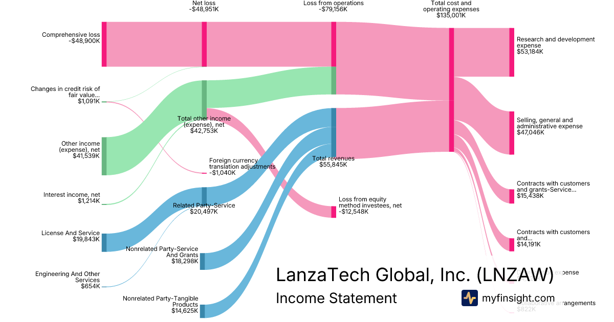 For the year ending 2025-12-31, LNZAW made $55,845K in revenue. -$48,900K in net income. Net profit margin of -87.56%.