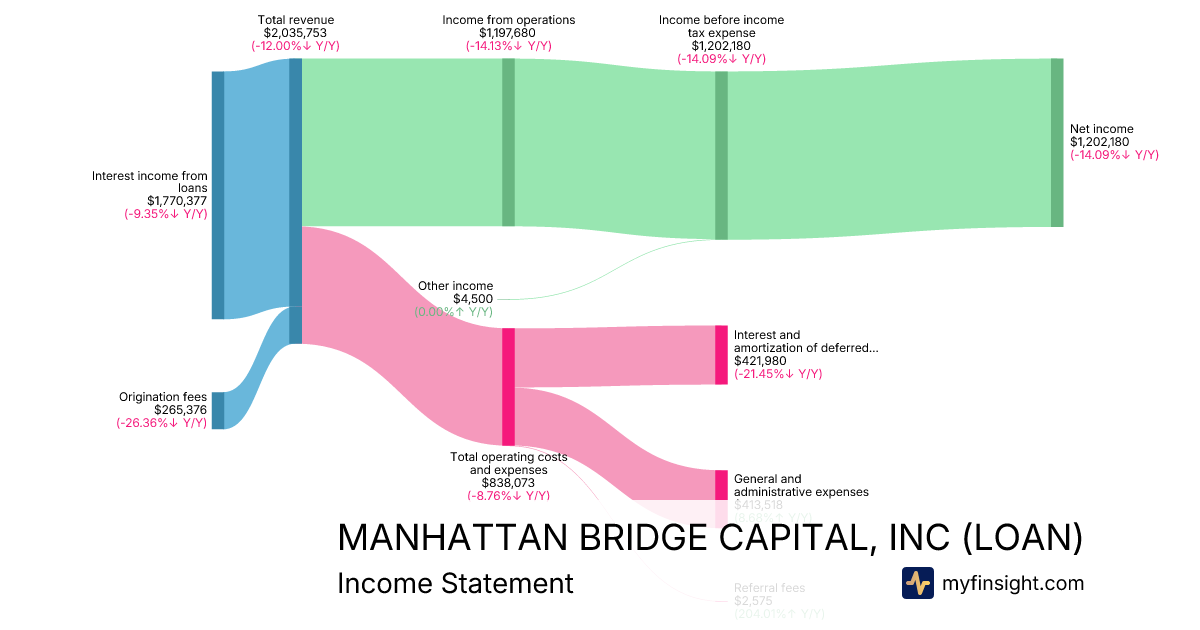 For the quarter ending 2025-09-30, LOAN made $2,035,753 in revenue. $1,202,180 in net income. Net profit margin of 59.05%.