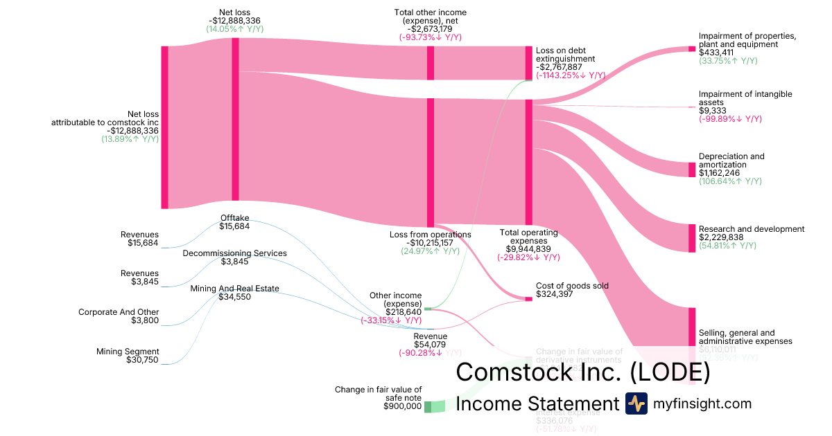 For the quarter ending 2025-09-30, LODE made $11,673,084 in revenue. -$12,888,336 in net income. Net profit margin of -110.41%.