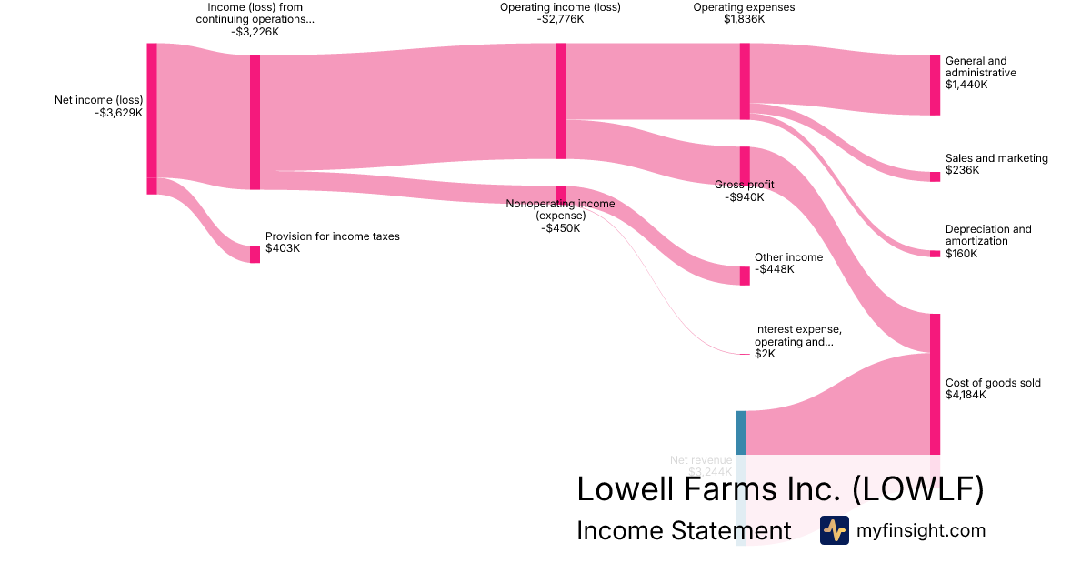 For the quarter ending 2024-09-30, LOWLF made $3,244K in revenue. -$3,629K in net income. Net profit margin of -111.87%.