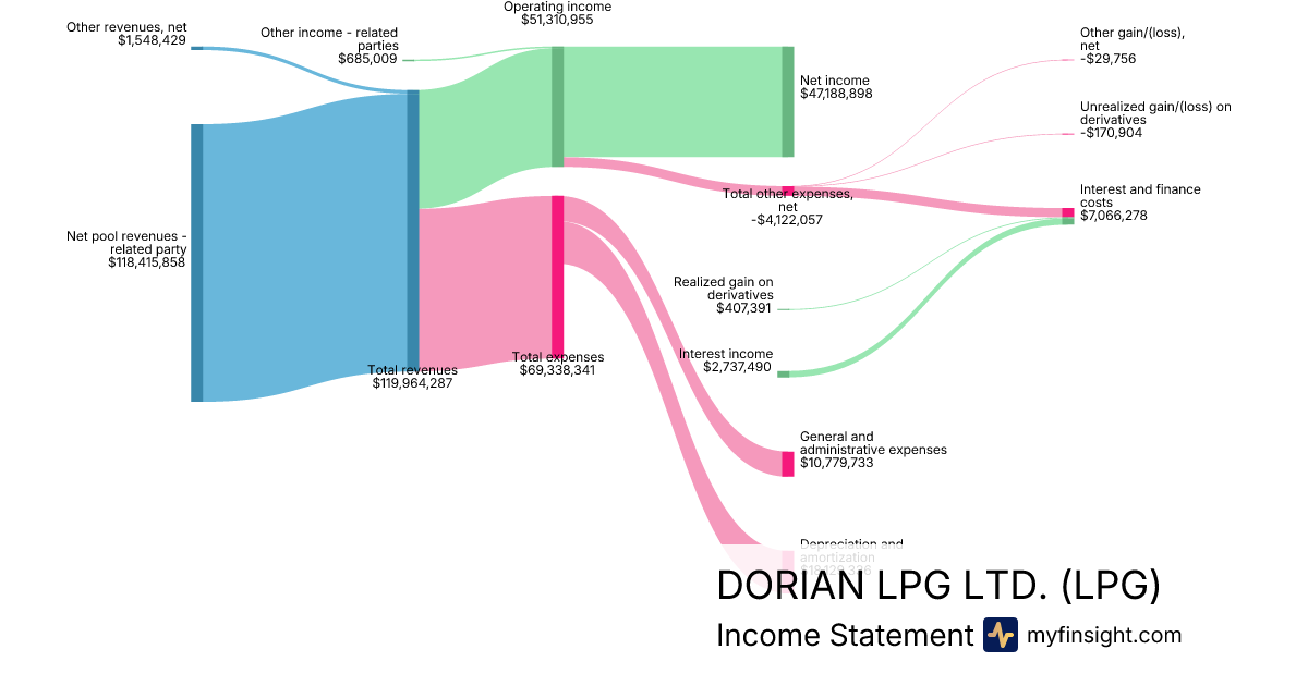 For the quarter ending 2025-12-31, LPG made $119,964,287 in revenue. $47,188,898 in net income. Net profit margin of 39.34%.