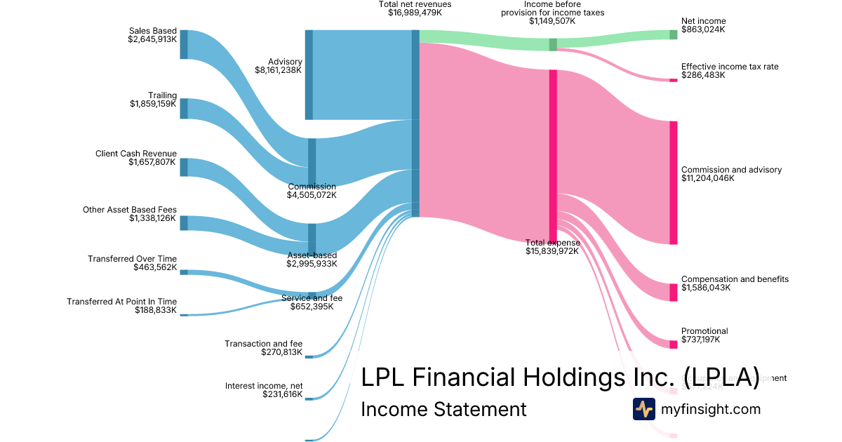 For the year ending 2025-12-31, LPLA made $16,989,479K in revenue. $863,024K in net income. Net profit margin of 5.08%.