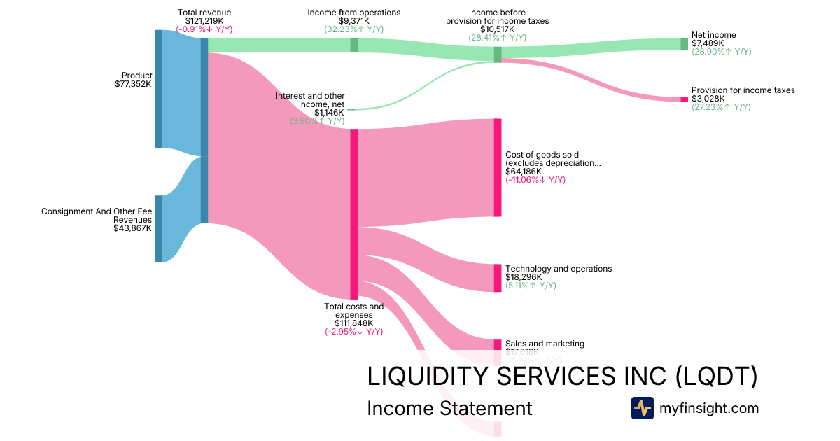 For the quarter ending 2025-12-31, LQDT made $121,219K in revenue. $7,489K in net income. Net profit margin of 6.18%.