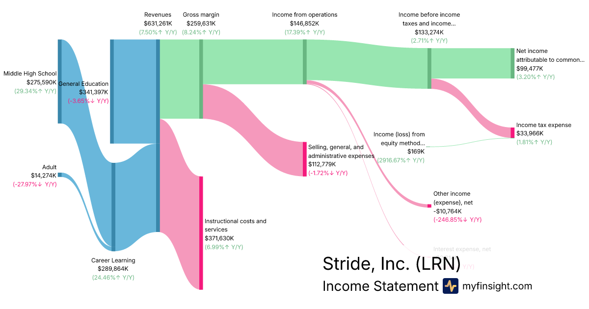 For the quarter ending 2025-12-31, LRN made $631,261K in revenue. $99,477K in net income. Net profit margin of 15.76%.