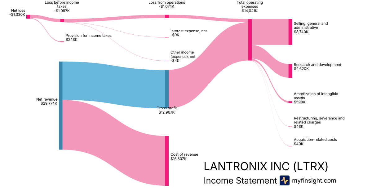 For the quarter ending 2025-12-31, LTRX made $29,774K in revenue. -$1,330K in net income. Net profit margin of -4.47%.