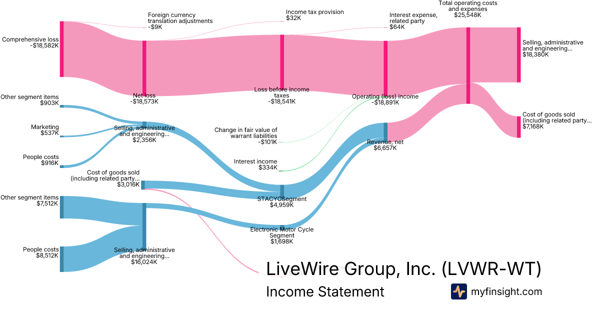 For the year ending 2025-12-31, LVWR-WT made $25,672K in revenue. -$75,143K in net income. Net profit margin of -292.70%.