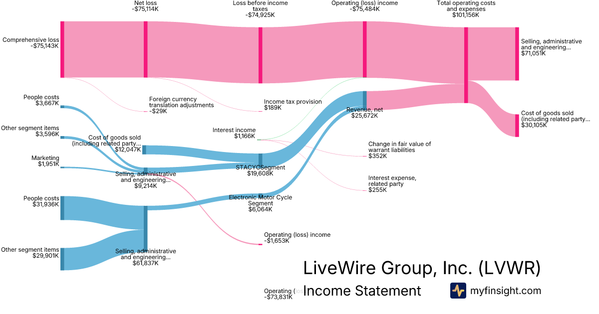 For the year ending 2025-12-31, LVWR made $25,672K in revenue. -$75,143K in net income. Net profit margin of -292.70%.