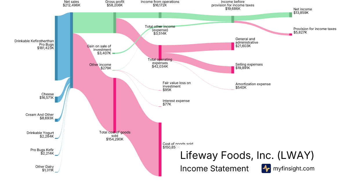 For the year ending 2025-12-31, LWAY made $212,496K in revenue. $13,859K in net income. Net profit margin of 6.52%.