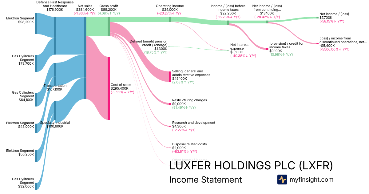 For the year ending 2025-12-31, LXFR made $384,600K in revenue. $7,700K in net income. Net profit margin of 2.00%.