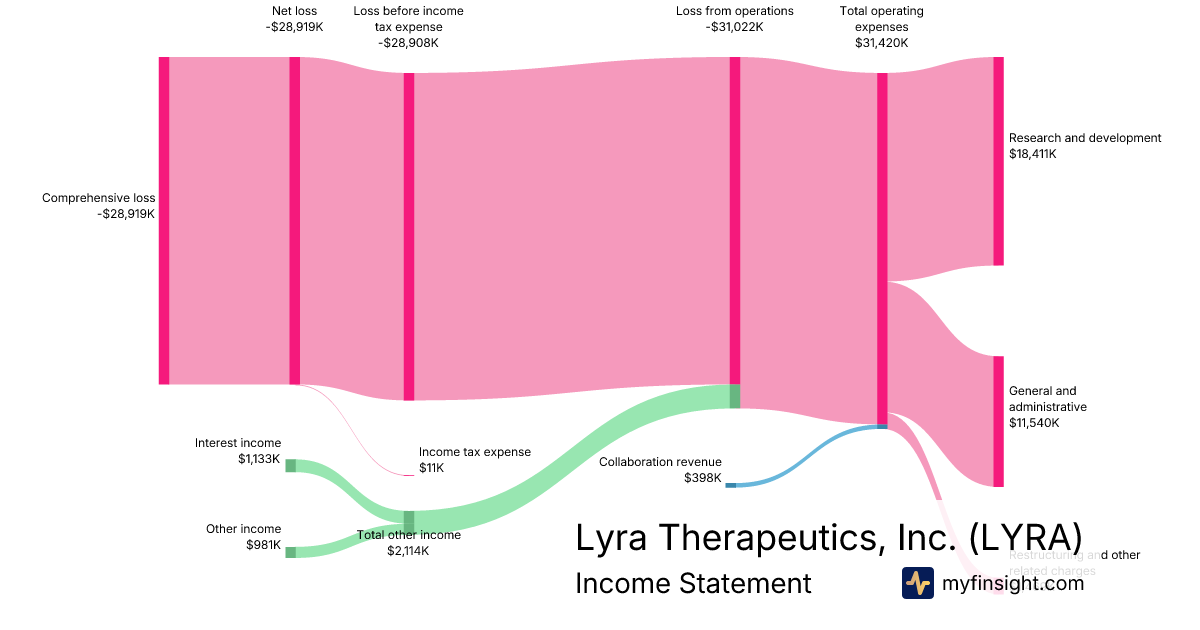 For the year ending 2025-12-31, LYRA made $398K in revenue. -$28,919K in net income. Net profit margin of -7266.08%.