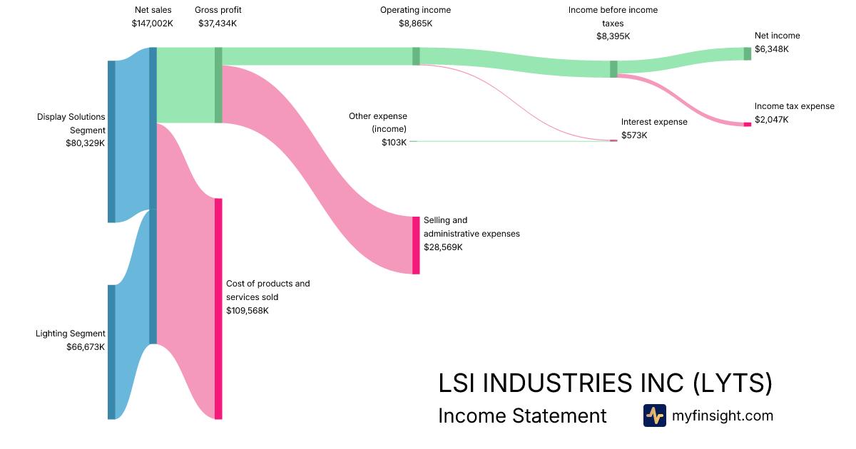 For the quarter ending 2025-12-31, LYTS made $147,002K in revenue. $6,348K in net income. Net profit margin of 4.32%.