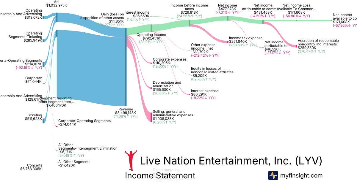 | Net income attributable to common stockholders of live nation | 431,458 | 243,411 | 23,203 | 451,805 |