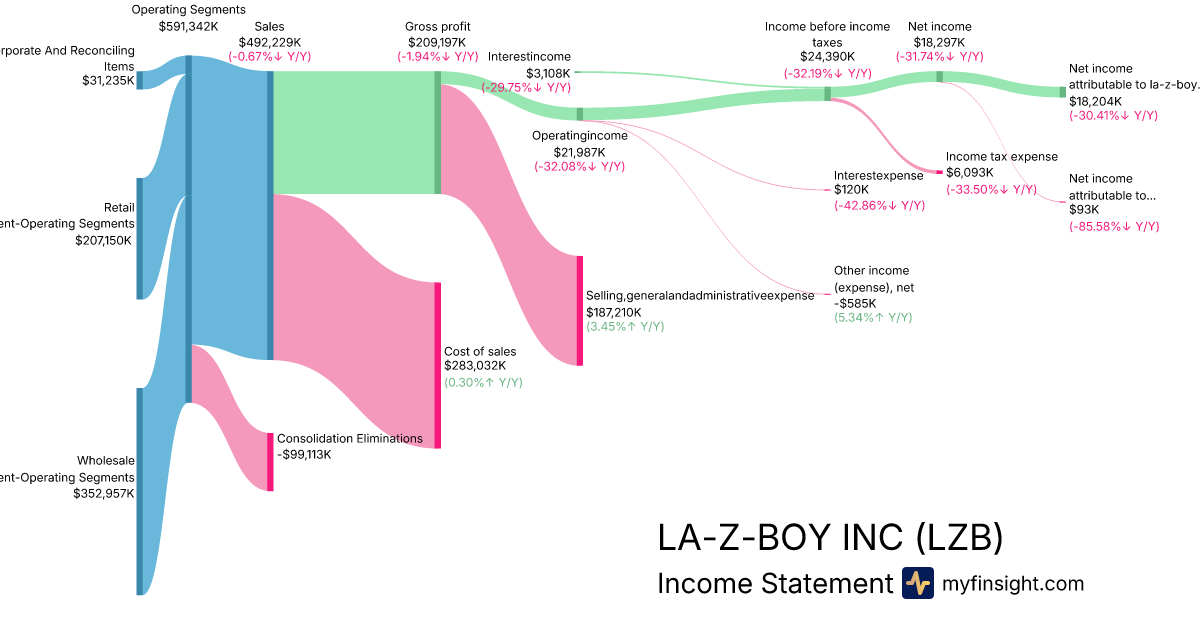 | Net income attributable to la-z-boy incorporated | 18,204 | 28,429 | 30,037 | 26,159 |