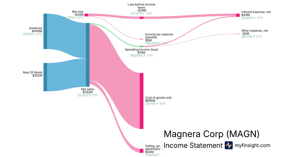 For the quarter ending 2025-12-27, MAGN made $792M in revenue. -$34M in net income. Net profit margin of -4.29%.