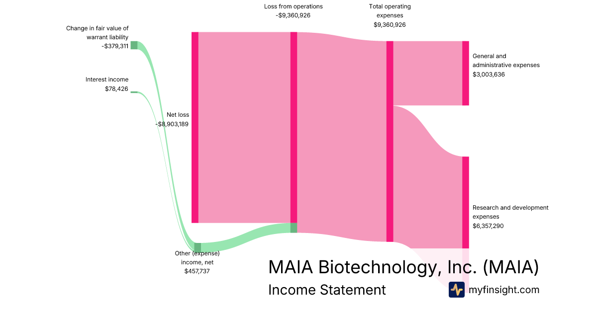 For the quarter ending 2025-09-30, MAIA made $9,060,041 in revenue. -$8,903,189 in net income. Net profit margin of -98.27%.