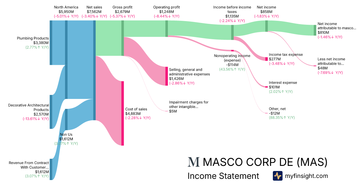 For the year ending 2025-12-31, MAS made $7,562M in revenue. $810M in net income. Net profit margin of 10.71%.